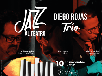 El Teatro Guillermo Cárdenas Jaramillo de la Universidad CES, sede El Poblado, invita a toda la comunidad universitaria a disfrutar una noche a ritmo de jazz con la presentación de Guillermo Vélez Parra, en la batería y vibráfono; Edwin Amariles Corrales en el contrabajo y bajo eléctrico, y Diego Rojas Moreno, en el Piano.
